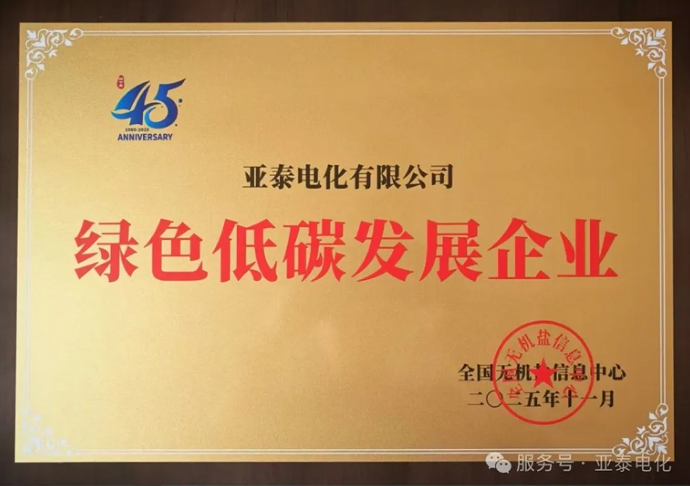 在化工行業(yè)向綠色可持續(xù)轉(zhuǎn)型的浪潮中,國(guó)家高新技術(shù)企業(yè)——亞泰電化有限公司始終堅(jiān)守創(chuàng)新驅(qū)動(dòng)、低碳發(fā)展的初心,近日再傳捷報(bào):公司在2025年11月7日至9日第45屆無機(jī)酸堿鹽學(xué)術(shù)年會(huì)上被授予“綠色低碳發(fā)展企業(yè)”。